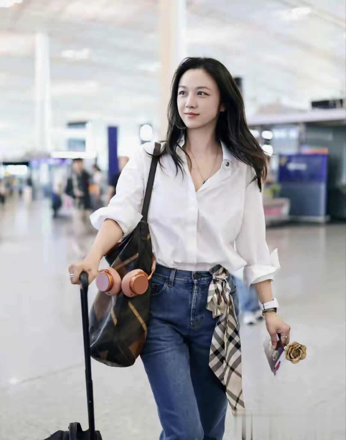 汤唯所穿的这件白衬衫是日常简约款,毫无夸张的戏剧化元素。解开最上面2至3粒扣子,营造出V领款式,尽显随性时髦。