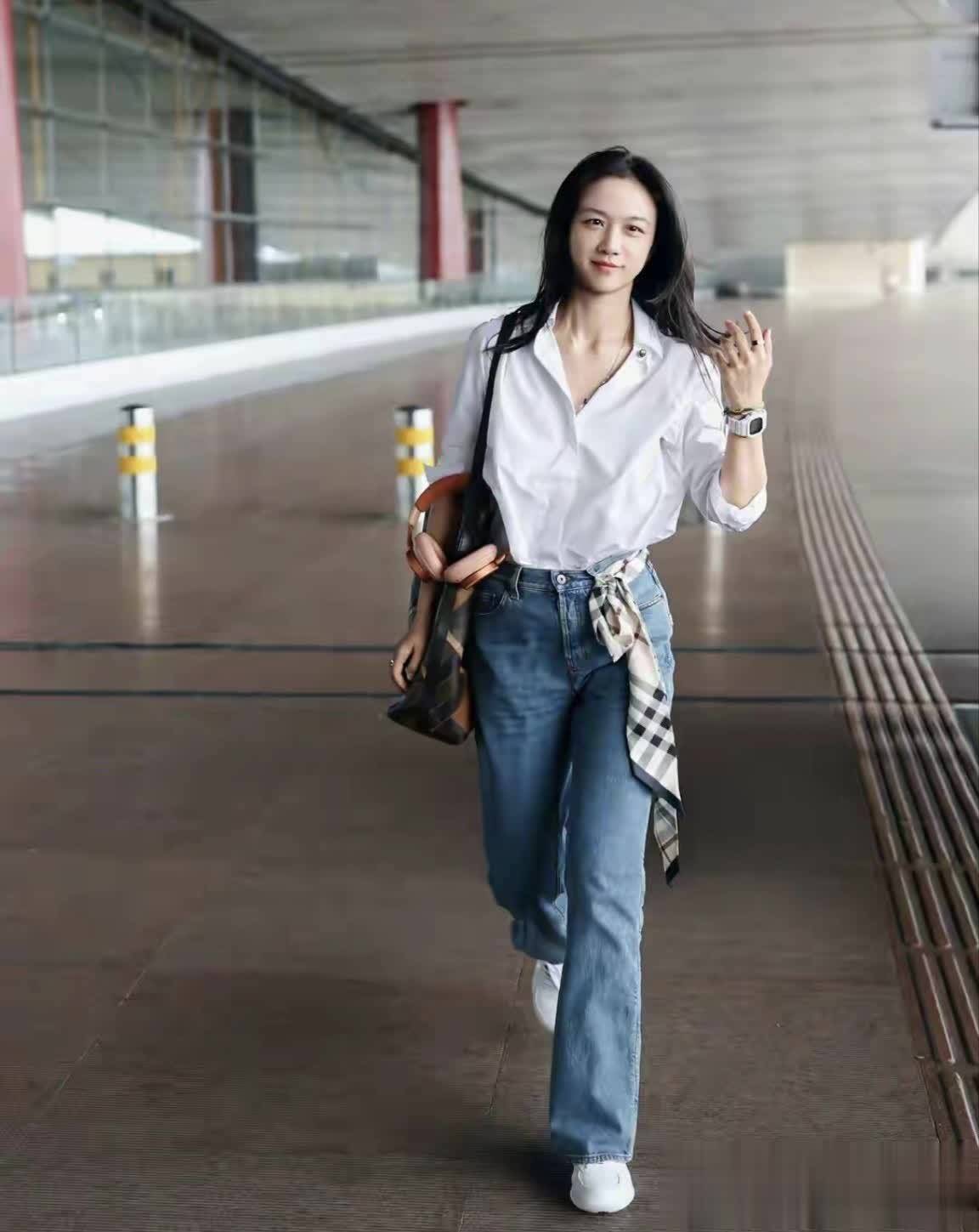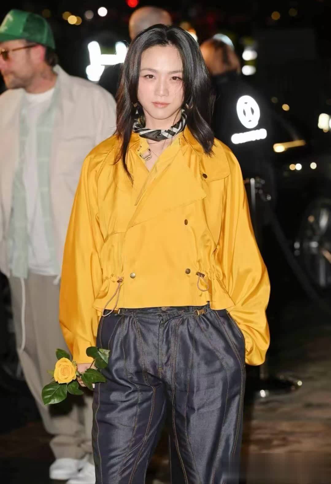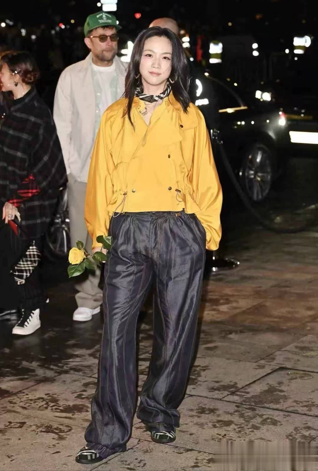 汤唯的气质独具辨识度,虽非令人一眼惊艳的颜值,却格外耐看。她的穿着风格时髦,私服造型展现出鲜明的个人特色。