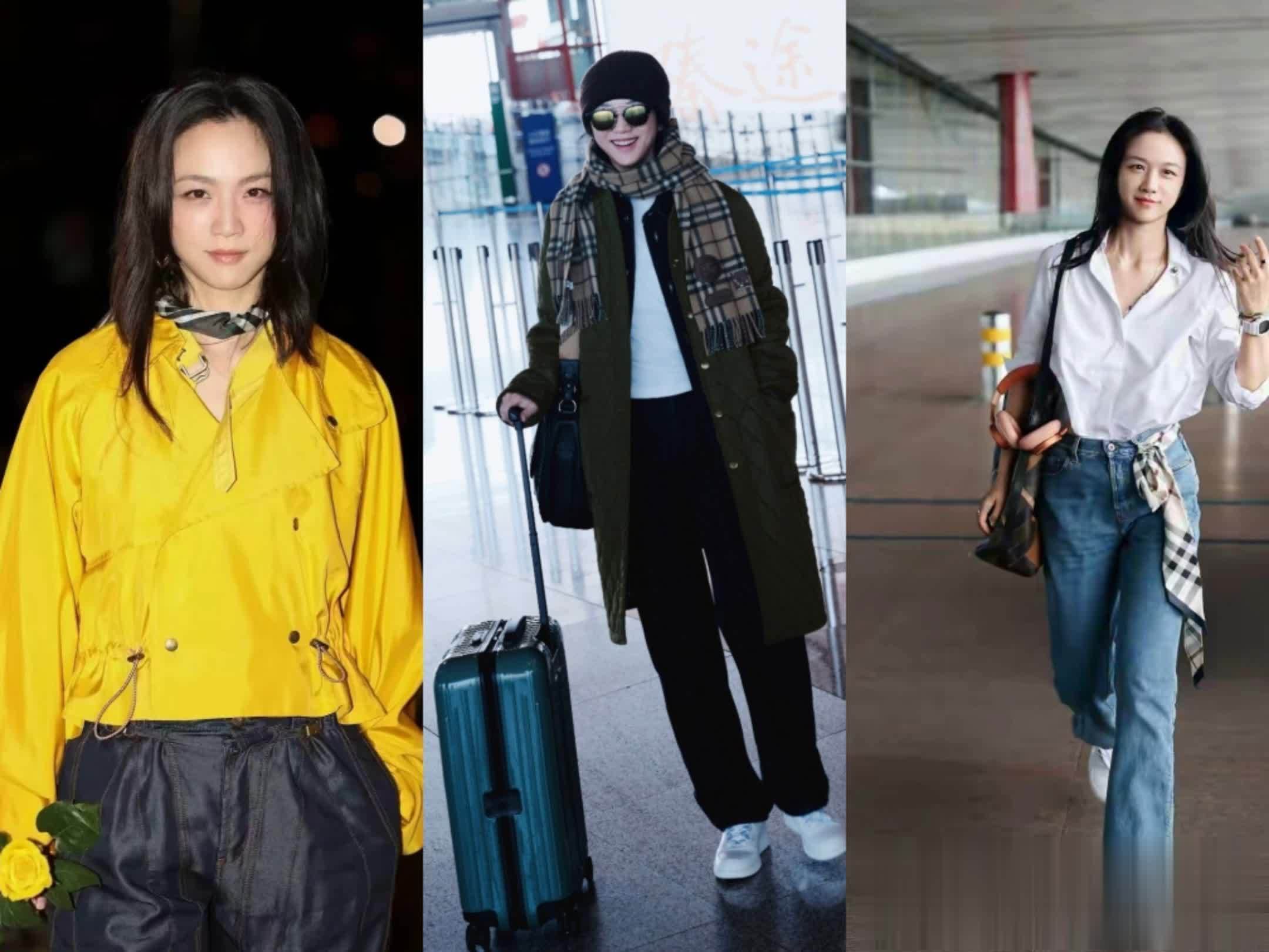 尤其值得一提的是,汤唯极为擅长搭配丝巾和围巾。往往只是基础款的穿搭,借助一条围巾单品,就能营造出令人惊艳的效果。